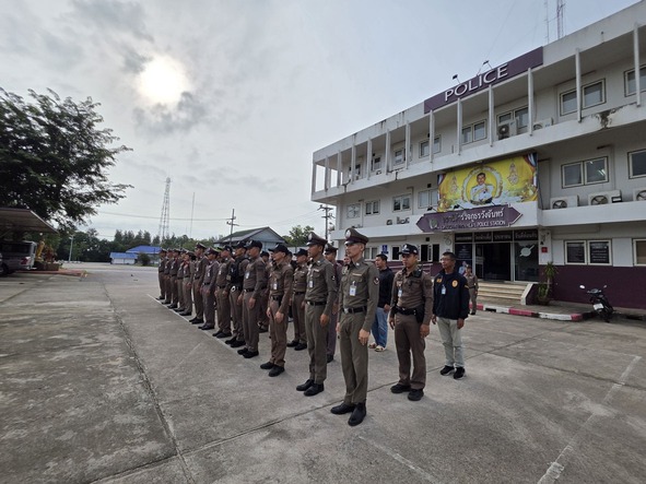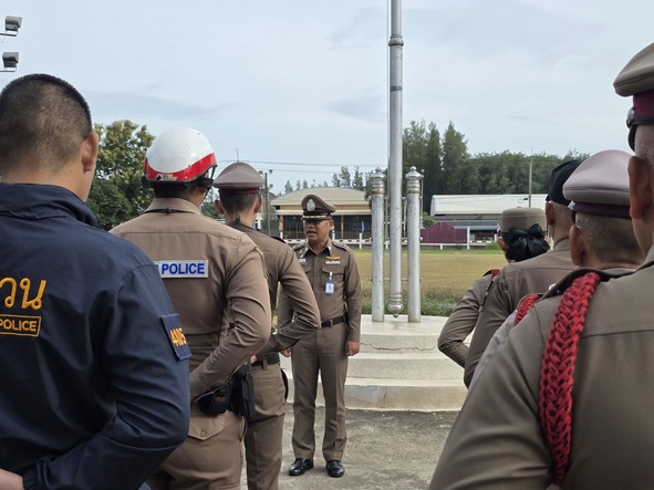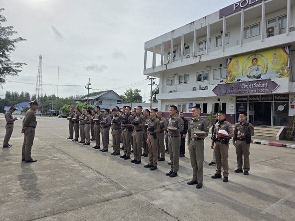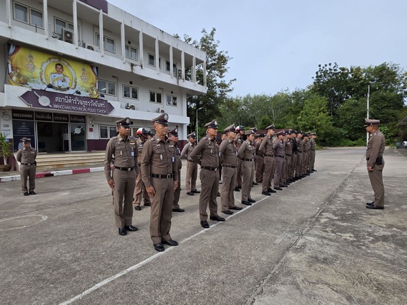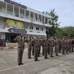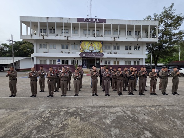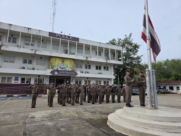กิจกรรมเข้าแถวเคารพธงชาติ 6 ส.ค.68 6 สิงหาคม 2568 โดย admin / ข่าวประชาสัมพันธ์,ข่าวภารกิจผู้บังคับบัญชา,อำนวยการ วันนี้ (6 ส.ค.68) เวลา 08.00 น. พ.ต.อ.ศุภกร มาตย์สมบัติ ผกก.สภ.วังจันทร์ พร้อมด้วย ข้าราชการตำรวจ สภ.วังจันทร์ ร่วมเข้าแถวเคารพธงชาติ สวดมนต์ไหว้พระ กล่าวอุดมคติตำรวจและได้ตรวจเครื่องแต่งกาย, ทรงผมข้าราชการตำรวจในสังกัด บริเวณหน้าอาคารที่ทำการ สภ.วังจันทร์ FacebookFacebookXXLINELine