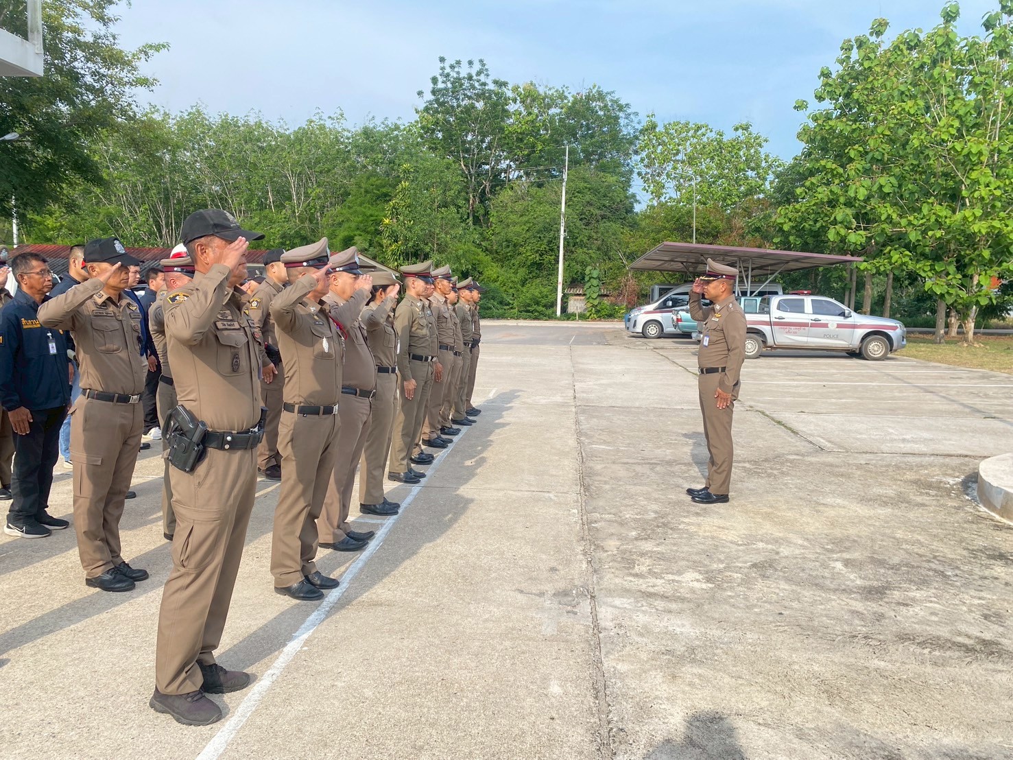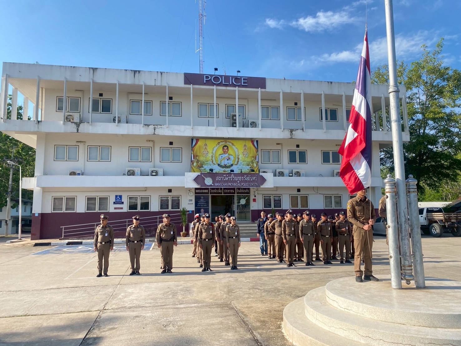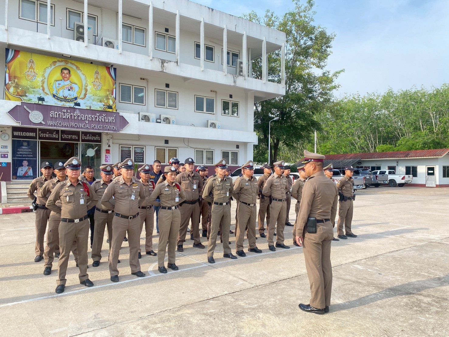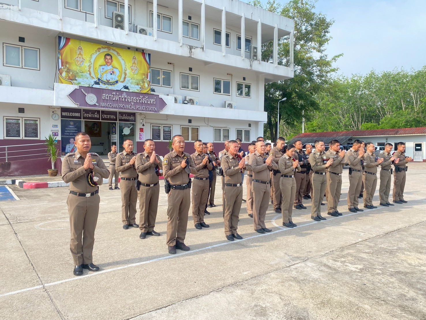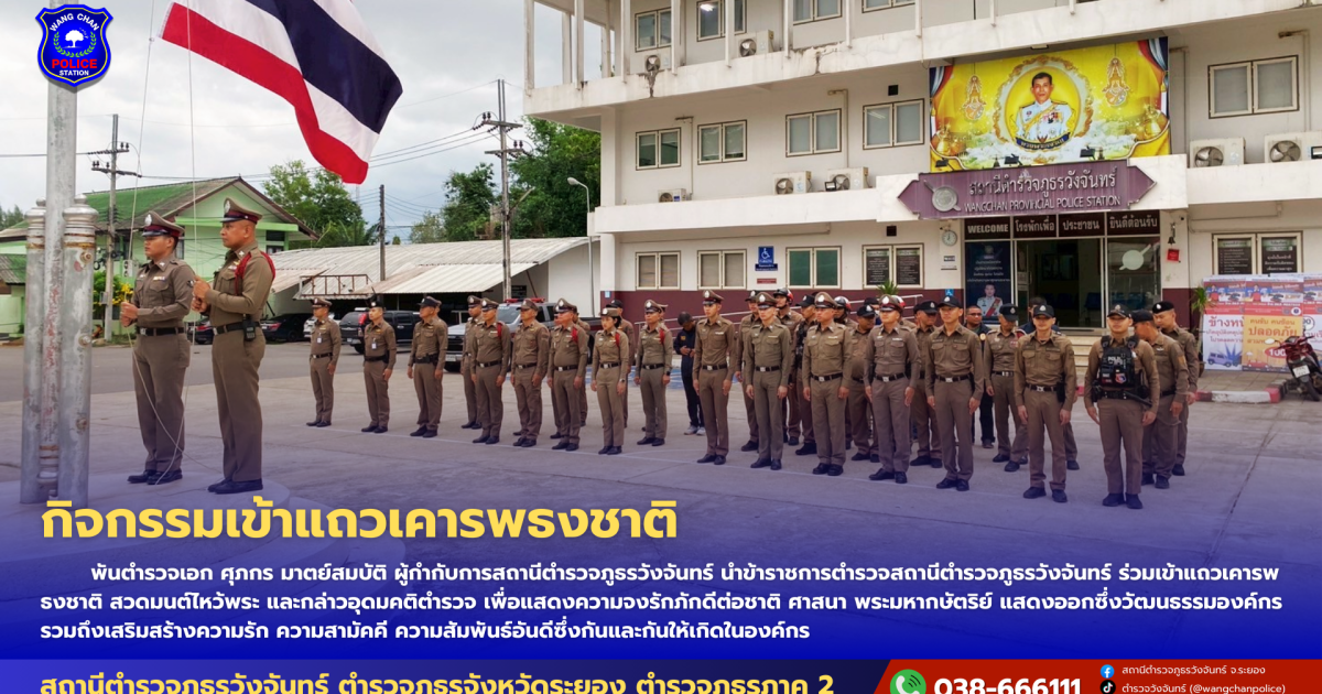 วันนี้ (1 พ.ค.68) เวลา 08.00 น. พ.ต.อ.ศุภกร มาตย์สมบัติ ผกก.สภ.วังจันทร์ นำข้าราชการตำรวจ สภ.วังจันทร์ทุกนาย ร่วมกันเคารพธงชาติ สวดมนต์ไหว้พระ และกล่าวอุดมคติตำรวจ เพื่อแสดงความจงรักภักดีต่อชาติ ศาสนา พระมหากษัตริย์ แสดงออกซึ่งวัฒนธรรมองค์กร รวมถึงเสริมสร้างความรัก ความสามัคคี ความสัมพันธ์อันดีซึ่งกันและกันให้เกิดในองค์กร และตรวจเครื่องแต่งกาย ทรงผม กำชับการปฎิบัติหน้าที่ข้าราชการตำรวจ และปล่อยแถวสายตรวจ