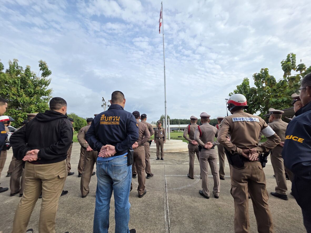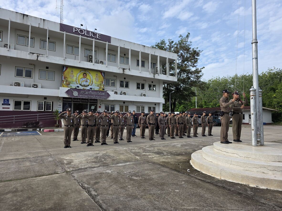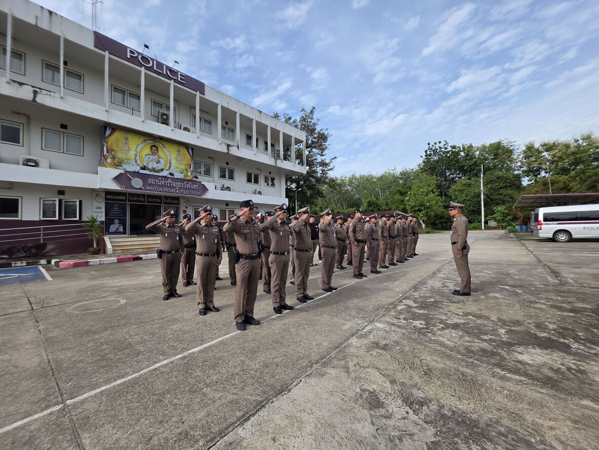 วันนี้ (27 ส.ค.68) เวลา 08.00 น. พ.ต.อ.ศุภกร มาตย์สมบัติ ผกก.สภ.วังจันทร์ พร้อมด้วย ข้าราชการตำรวจ สภ.วังจันทร์ ร่วมเข้าแถวเคารพธงชาติ สวดมนต์ไหว้พระ กล่าวอุดมคติตำรวจและได้ตรวจเครื่องแต่งกาย, ทรงผมข้าราชการตำรวจในสังกัด บริเวณหน้าอาคารที่ทำการ สภ.วังจันทร์
