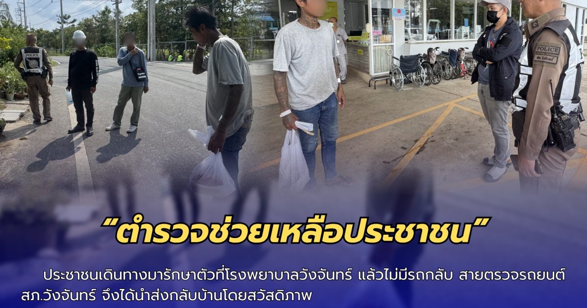 ร.ต.ต.ทศวรรษ ราชประโคน ร้อยเวร20 ว.4 ช่วยเหลือประชาชน มารักษาตัวที่โรงพยาบาลวังจันทร์ แล้วไม่มีรถกลับ จึงได้นำส่งกลับบ้าน