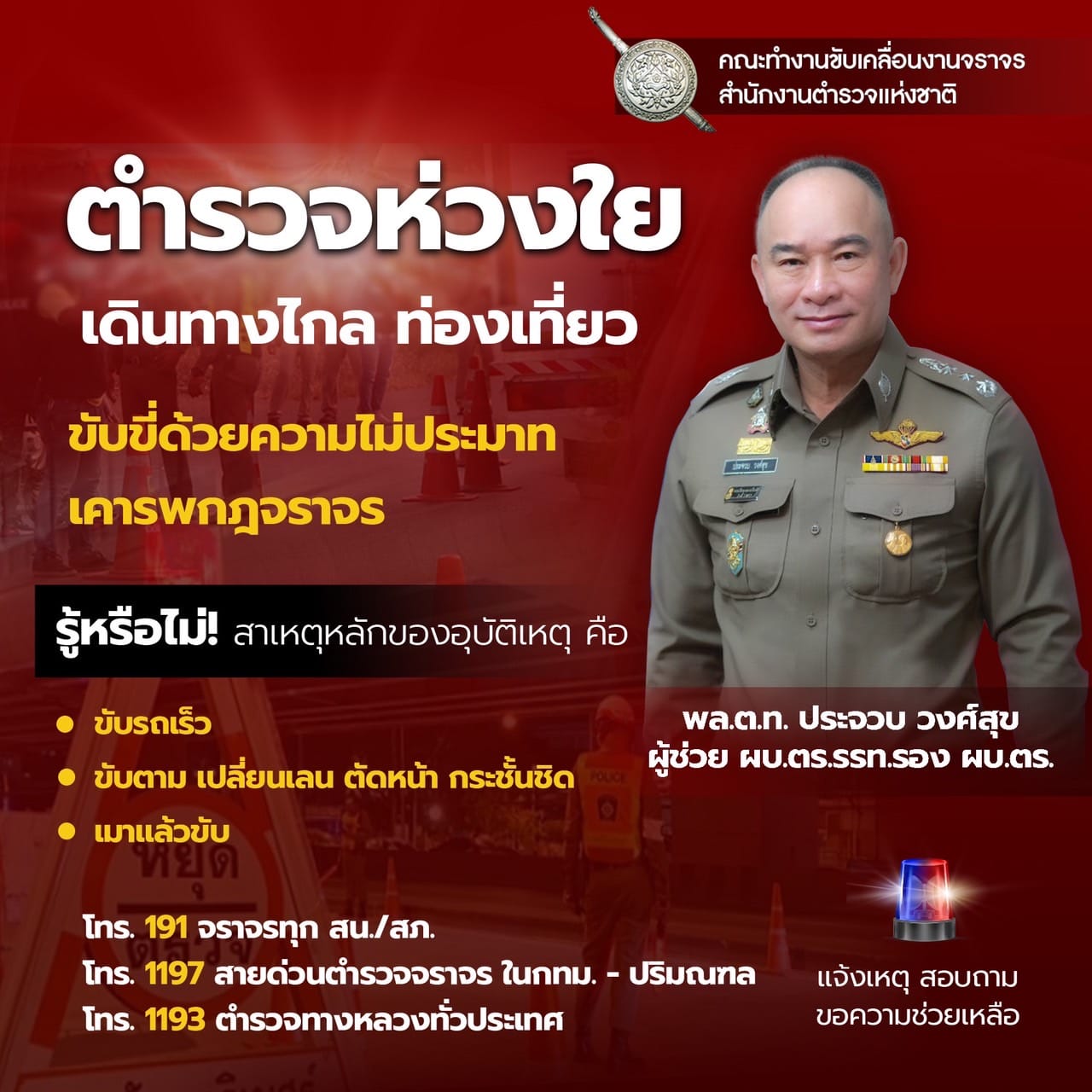 • โทร. 1193 ตำรวจทางหลวงทั่วประเทศ