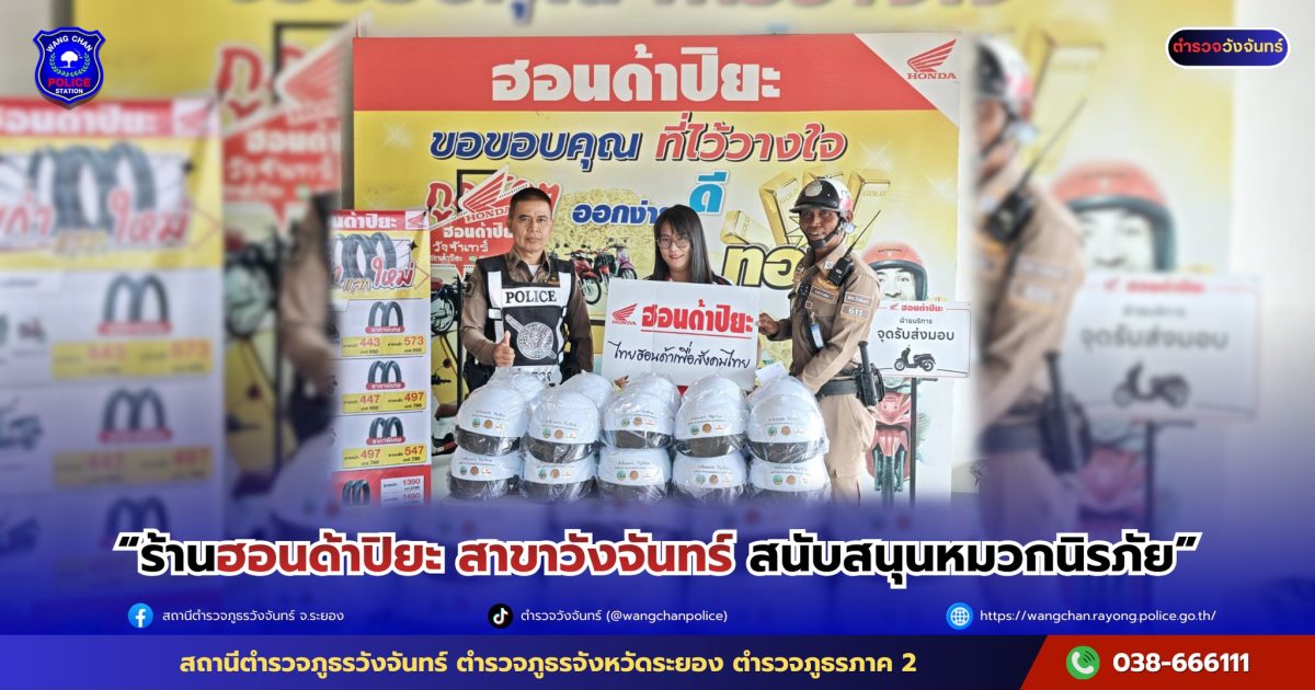 ในนาม สภ.วังจันทร์ ขอขอบคุณร้านฮอนด้าปิยะ สาขาวังจันทร์