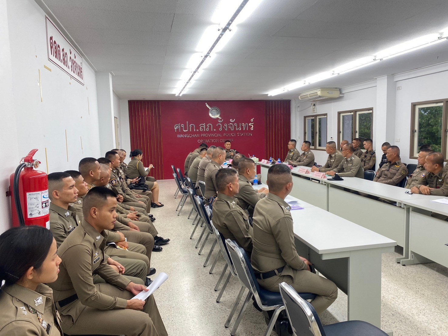 พร้อมด้วยข้าราชการตำรวจในสังกัด สภ.วังจันทร์ ร่วมต้อนรับและเข้าร่วมประชุมเพื่อฟังบรรยายสรุป และรับฟังข้อเสนอแนะ คำแนะนำ จากคณะตรวจฯ
