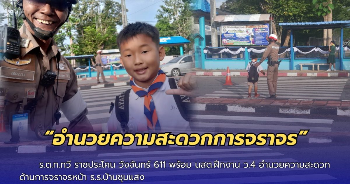 ร.ต.ท.ทวี ราชประโคน วังจันทร์ 611 พร้อม นสต.ฝึกงาน ว.4 อำนวยความสะดวก ด้านการจราจรหน้า ร.ร.บ้านชุมแสง เหตุการณ์ ปกติ