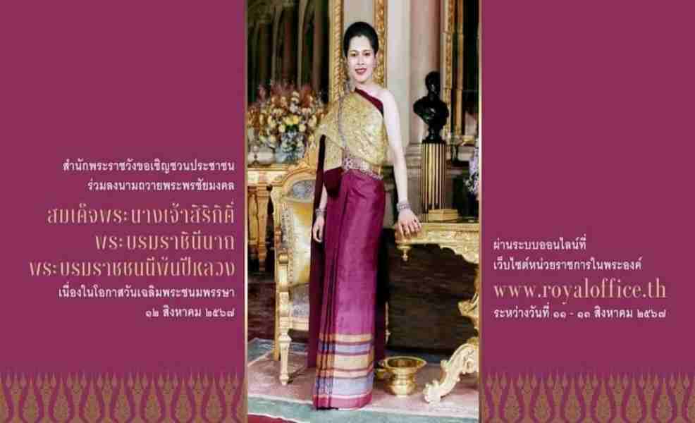สำนักพระราชวัง ขอเชิญชวนประชาชนร่วมลงนามถวายพระพรชัยมงคล สมเด็จพระนางเจ้าสิริกิติ์ พระบรมราชินีนาถ พระบรมราชชนนีพันปีหลวง