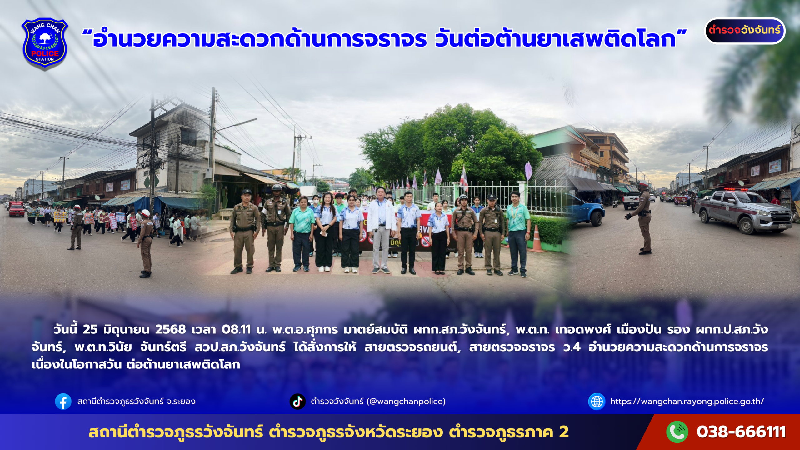 วันที่ 25 มิ.ย.68 เวลา 09.00 น. ภายใต้การอำนวยการของ พ.ต.อ.ศุภกร มาตย์สมบัติ ผกก.สภ.วังจันทร์ และ พ.ต.ท. เทอดพงศ์ เมืองปัน รอง ผกก.ป.สภ.วังจันทร์ ได้สั่งการให้