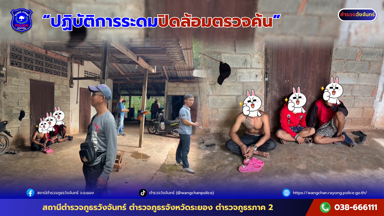 วันที่ 6 มกราคม 2569 ภายใต้การอำนวยการของ พ.ต.อ.ศุภกร มาตย์สมบัติ ผกก.สภ.วังจันทร์ โดยมี พ.ต.ท.เสกข์สิทธิ์ ทองถาวรวงศ์ รอง ผกก.สส.สภ.วังจันทร์ พร้อมชุดสืบสวน