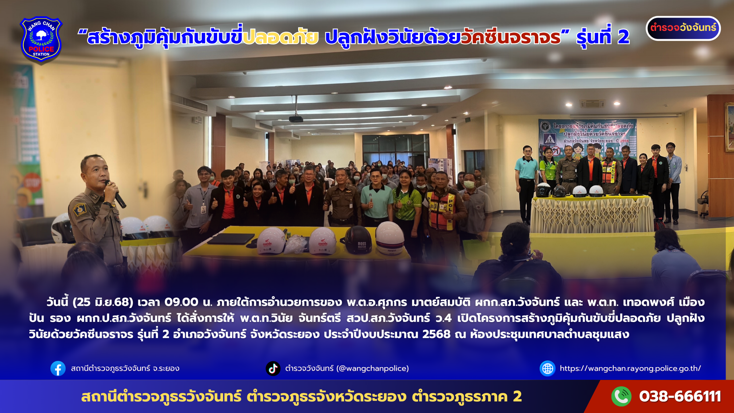วันที่ 25 มิ.ย.68 เวลา 09.00 น. ภายใต้การอำนวยการของ พ.ต.อ.ศุภกร มาตย์สมบัติ ผกก.สภ.วังจันทร์ และ พ.ต.ท. เทอดพงศ์ เมืองปัน รอง ผกก.ป.สภ.วังจันทร์ ได้สั่งการให้