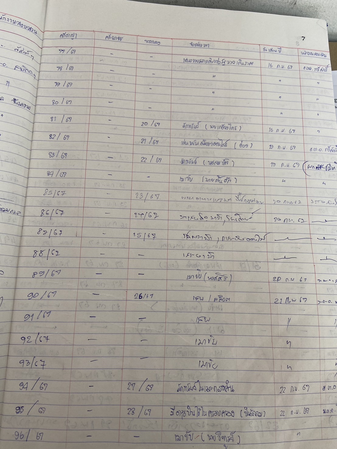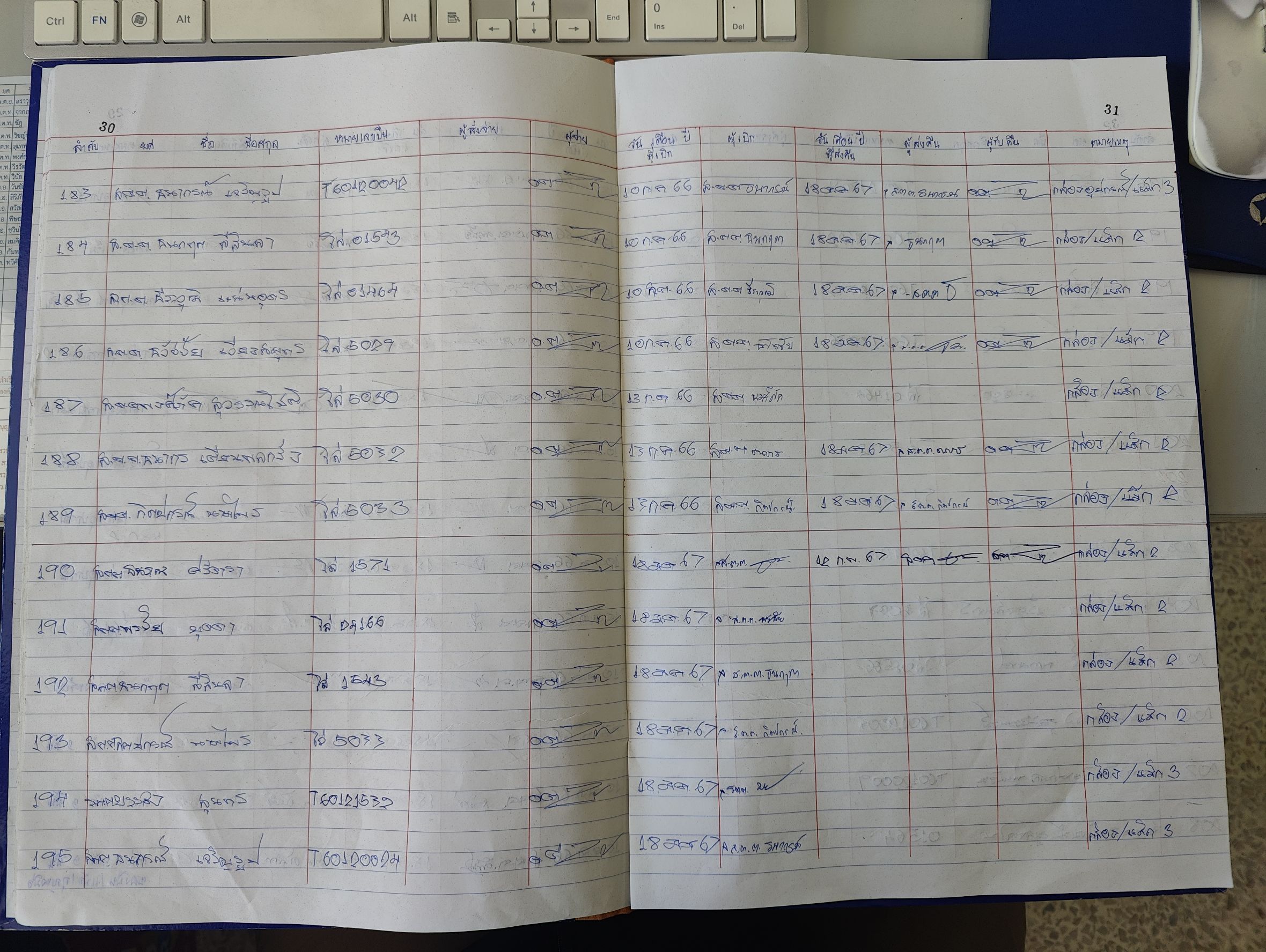 ภาพตัวอย่างสมุดคุมทรัพย์สินของราชการ ของบริจาค และการจัดเก็บของกลาง