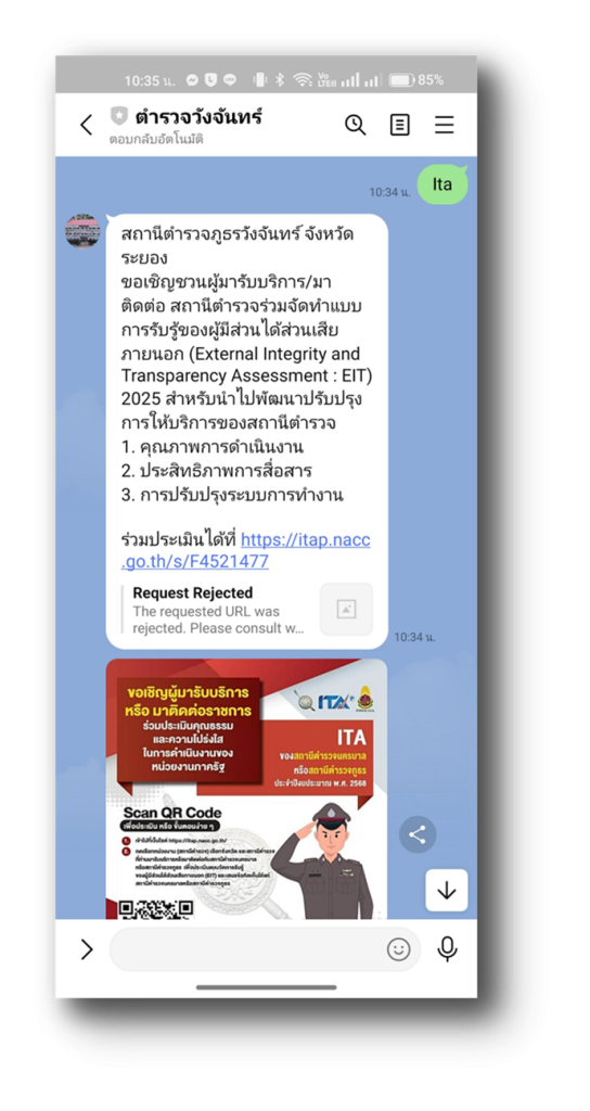 ขอเชิญชวนผู้มารับบริการ/มาติดต่อ สถานีตำรวจร่วมจัดทำแบบการรับรู้ของผู้มีส่วนได้ส่วนเสียภายนอก (External Integrity and Transparency Assessment : EIT) 2025 สำหรับนำไปพัฒนาปรับปรุงการให้บริการของสถานีตำรวจ